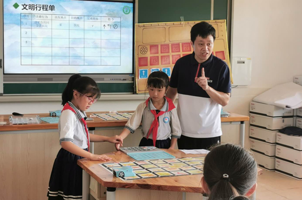 活动中,附属小学还向屿头乡中心小学赠送了书籍、学具等学习用品,郑恩老师为学生带来的人工智能课《裤兜学礼仪——三年级编程入门课》。
