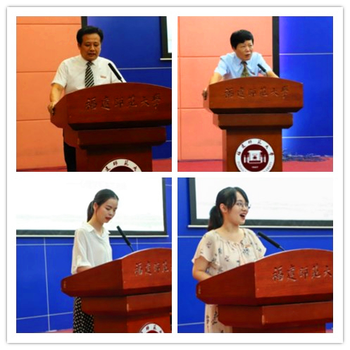 教师代表李莎,新生代表李坤镒、陈婧怡,老生代表魏瑶琪分别发言。