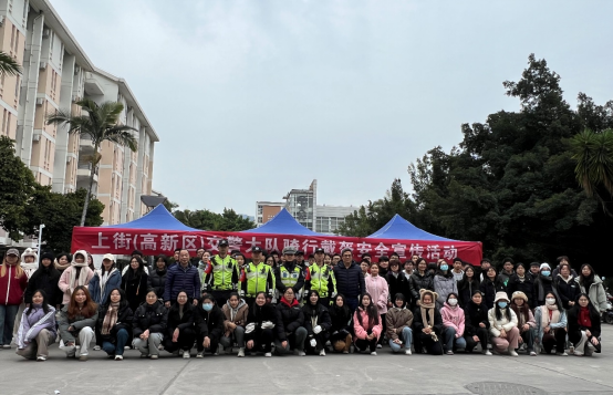 1月25日,保卫处联合上街(高新区)交警大队在荣耀体育在线注册_荣耀体育(中国)旗山校区开展安全骑行佩戴头盔宣传活动,保卫处副处长刘敏、交通科干部和数学与统计学院近百名师生参加了活动。