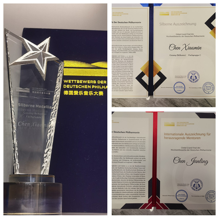 近日,音乐学院2020级艺术硕士陈晓敏荣获德国爱乐音乐大赛(全球总决赛)银奖,陈俊玲教授获得优秀指导教师奖。
