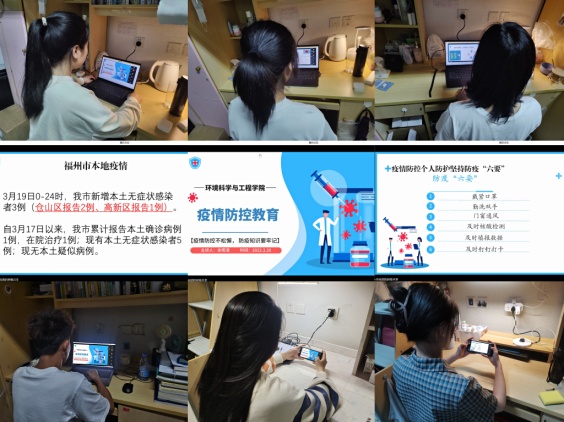 强化宣传教育。学工部及时发布《关于进一步做好近期学生思想教育和关心服务等工作的通知》,组织学院开展“共抗疫情、爱国力行”线上主题宣传教育,统一制作讲稿和课件,通过线上“周末集中教育”“主题班会”等,引导学生大力弘扬伟大抗疫精神,坚定理想信念、厚植爱国主义情怀。在“青马易战”特色应用持续更新“新型冠状病毒疫情防控”答题专栏,鼓励学生自觉学习疫情防控知识,统一思想认识,及时了解最新防疫政策,严格遵守法律法规、公民道德、校纪校规,近期累计学生答题总数达280多万题。