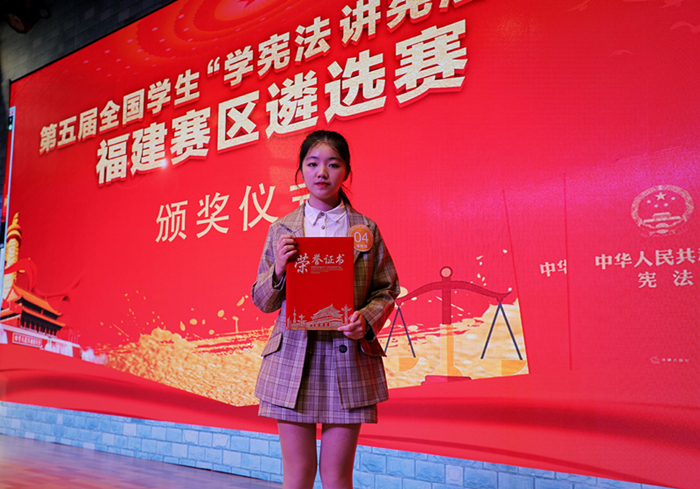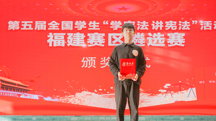10月17日至18日,由福建省教育厅、福建省司法厅主办,福州市教育局、鼓楼区教育局承办的第五届全国学生“学宪法讲宪法”活动福建赛区遴选赛在福州举行。法学院2019级学生荆柯宇(指导老师:陈斯彬)以作品《平凡之路》荣获高校组演讲比赛一等奖,协和学院2018级学生黎译文(指导老师:翁怡)、法学院2018级学生林雨欣(指导老师:杨雅华)分别荣获高校组知识竞赛一等奖、三等奖。