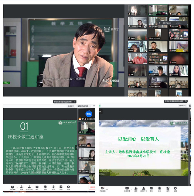 近日,数学与统计学院“校外辅导员”、政和县西津畲族小学校长庄桂淦在线上为学院学生上题为《以爱润心 以爱育人》的思政课。学院党委副书记王尚鹏、教师代表,学院团委学生会全体成员、2022年上半年入党积极分子和发展对象培训班学员、学院第一期青马班学员共计250余人参加了活动。
