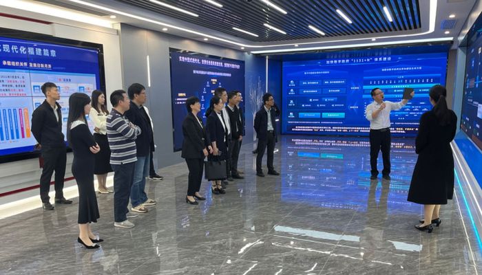 学院一行参观了数字政府展示中心,与相关部门负责人座谈交流。福建省大数据集团总会计师黄晞表示,福建省大数据集团将推进资源共享、优势互补、产教融合、校企协同育人,积极探索“双数融合共建”“人才共育共赢”新模式,为数字福建、数字中国建设作出新的更大贡献。会上,双方围绕共建创新人才培养基地、共建联合实验室、共建政府智库、共同开发和利用对外公共数据、共同开展横向课题研究等方面展开深入交流。
