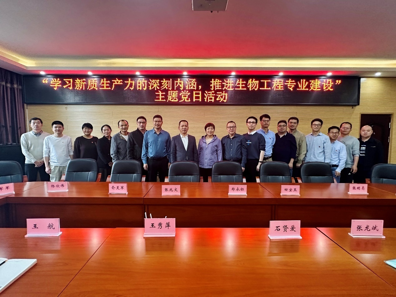 近日,生命科学学院生物工程系党支部、工业微生物发酵技术国家地方联合工程研究中心党支部共同前往福州大学生物科学与工程学院,开展“学习新质生产力的深刻内涵,推进生物工程专业建设”主题党日活动。院党委书记张兆文教授,生物工程系主任、党支部书记郑永标教授、支部党员和福州大学生物科学与工程学院党政领导、教师代表参加。