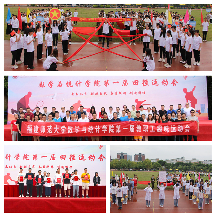 5月8日,数学与统计学院第一届田径运动会在西区田径场举行。学院领导林伟、王健、王尚鹏、沈建和,学院各部门负责人以及师生代表共600多人参加了开幕式。副院长沈建和在开幕上致辞。各班级方阵在开幕式上展示了主题鲜明、形式多样的入场式表演。