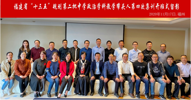 1117日,由马克思主义学院承办的福建省“十三五”第二批中学政治学科教学带头人第四次集中培训在福州举行。学院党委副书记阮传瞰、项目负责人刘国皇,以及23名培训学员参加了开班式。