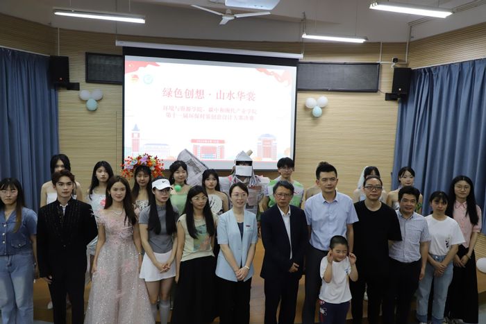 近日,环境与资源学院、碳中和现代产业学院在社团之家举办“绿色创想•山水华裳”第十一届环保时装创意设计大赛。副校长陈庆华到场指导,美术学院党委副书记黄智锋、美术学院服装与服饰设计教研室肖立志副教授,环境与资源学院、碳中和现代产业学院党委副书记陈今园、学院政工干部、部分学生代表参加活动。