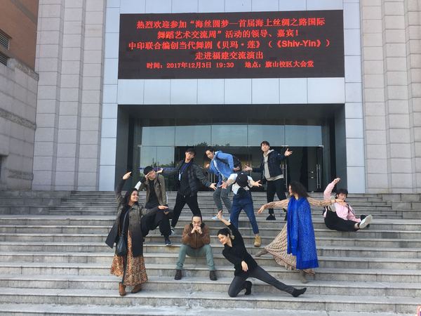 Sponsored by China Dancers Association and co-produced by Chinese Literature and Art Fund, ShriRam Centre for Performing Arts, Serendipity Arts Trust and SRF, the contemporary dance drama Shiv-Yinwas performed in FNU on the evening of Dec. 3rd. It captivated an audience of 1000. Honored guests invited to enjoy the performance with our teachers and students included Feng Shuangbai, Chairman of China Dancers Association & Deputy Director General and Secretary General of Chinese Literature and Art Fund, Luo Bin, SEC of CCP group, Vice-chairman and Secretary General ofChina Dancers Association, Xia Xiaohu, member of CCP group, Vice Secretary General of China Dancers Association, Zhang Ping, Executive Deputy Editor-in-Chief of Dance & Vice Director of Chinese Arts Federation Dance Center, Chen Peizhao, Deputy Secretary General of Fujian Political Consultative Conference, Shi Zhenhua, Chairman of Fujian Dancers Association & Dean of the Fuzhou Opera House, and Miu Lirong, Vice Chairman and Secretary General of Fujian Dancers Association, as well as experts attendingInternational symposium on development and cooperationofdances in the Maritime Silk Road and Vice-president of FNU, Tu Rong.