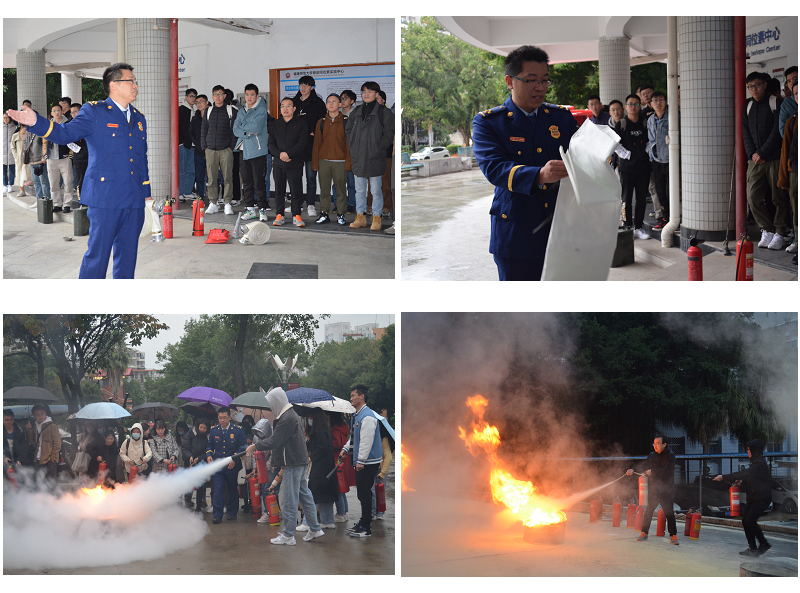 培训讲座后,在保卫处消防科负责人的协助下,张参谋指导学生使用灭火器、消防栓、灭火毯等消防物品,有序开展各类消防器材的实际操作及灭火演练。此外,张参谋还对重点实验室的消防安全隐患排查工作进行了现场指导。