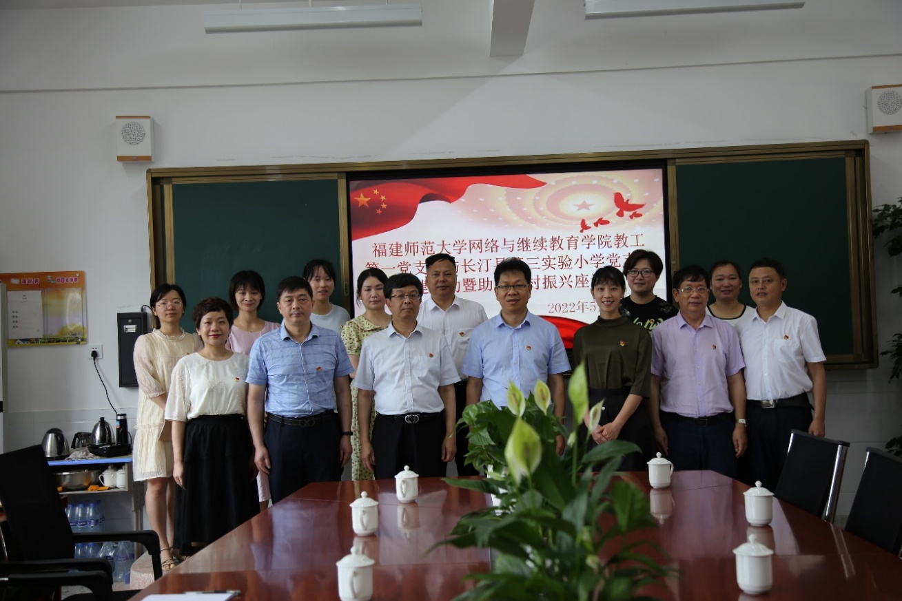 近日,网络与继续教育学院、职业技术教育学院教工第一党支部与长汀县第三实验小学党支部开展结对共建活动,举行助力乡村振兴座谈会。长汀县第三实验小学校长赖松荣及教师代表,荣耀体育在线注册_荣耀体育(中国)网络与继续教育学院、职业技术教育学院党委书记李建华、常务副院长欧榕,教工第一党支部部分党员参加了活动。
