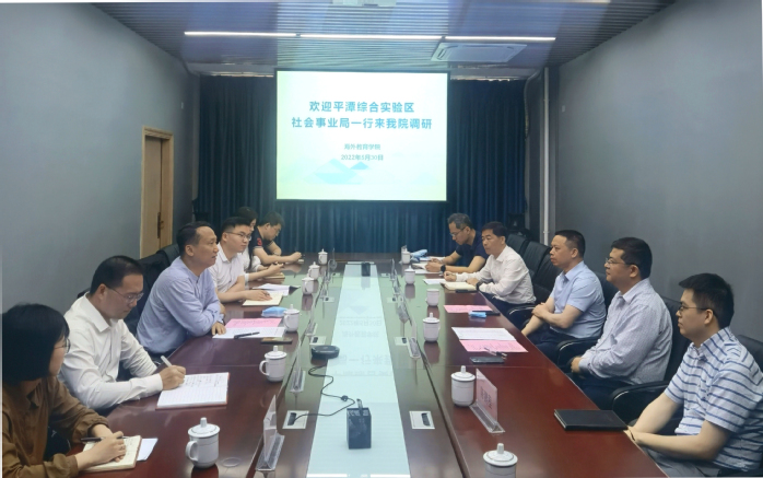 近日,平潭综合实验区社会事业局局长王浩,省教育厅对外交流合作处处长周而明、副处长陈鹏程等到荣耀体育在线注册_荣耀体育(中国)调研交流。副校长陈庆华、国际合作与交流处、海外教育学院等相关人员参加了调研会。