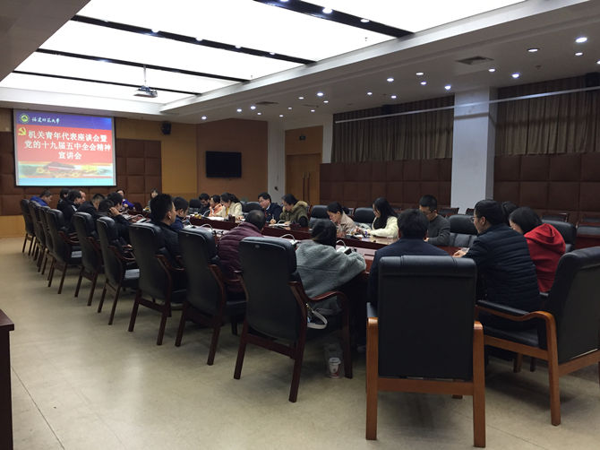 1216日,机关党委在旗山校区第十会议室召开机关青年代表座谈会,学习贯彻党的十九届五中全会精神。机关党委主持工作副书记陈金章、副书记李岩丽,机关部分青年代表参加了会议。